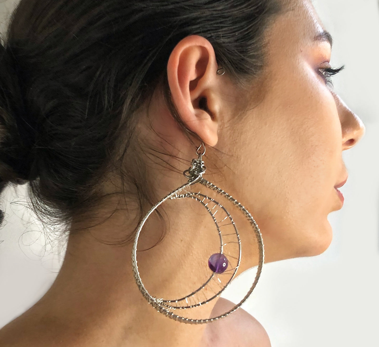 Le Moon Hoop a été créé en utilisant une technique de tissage spéciale avec du fil de laiton.