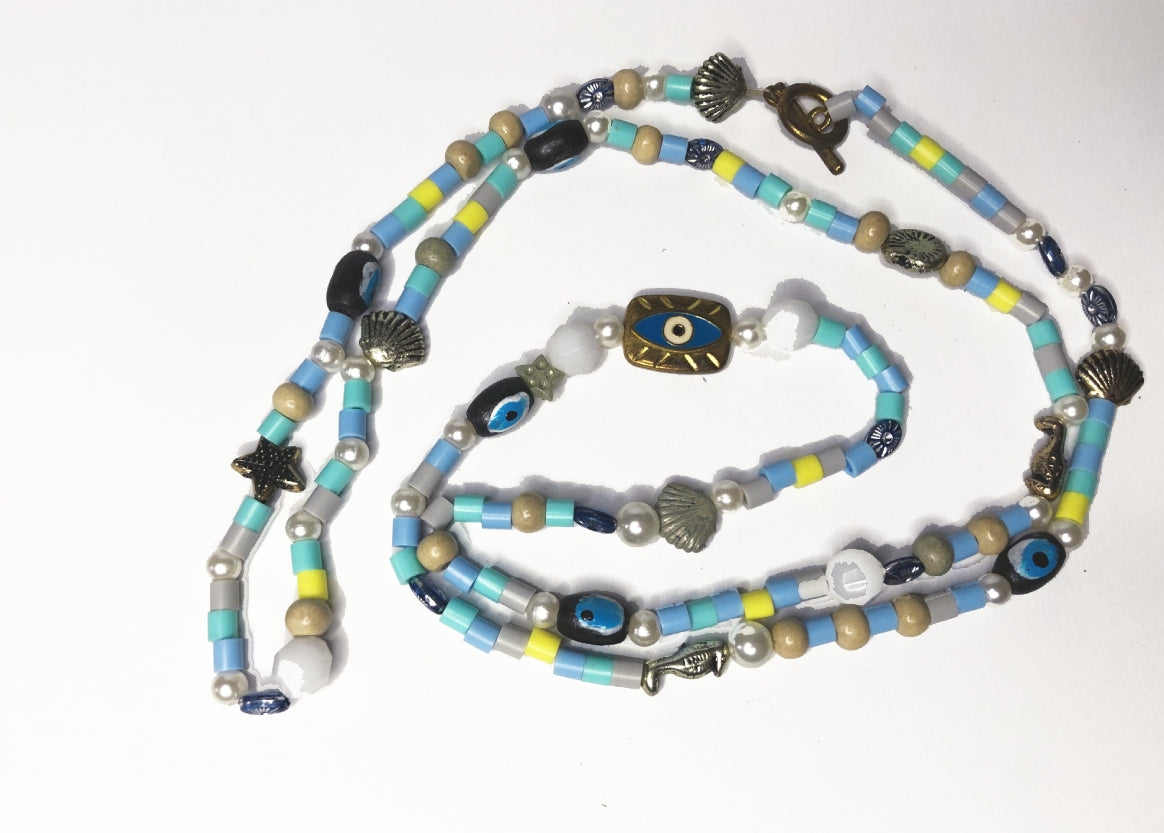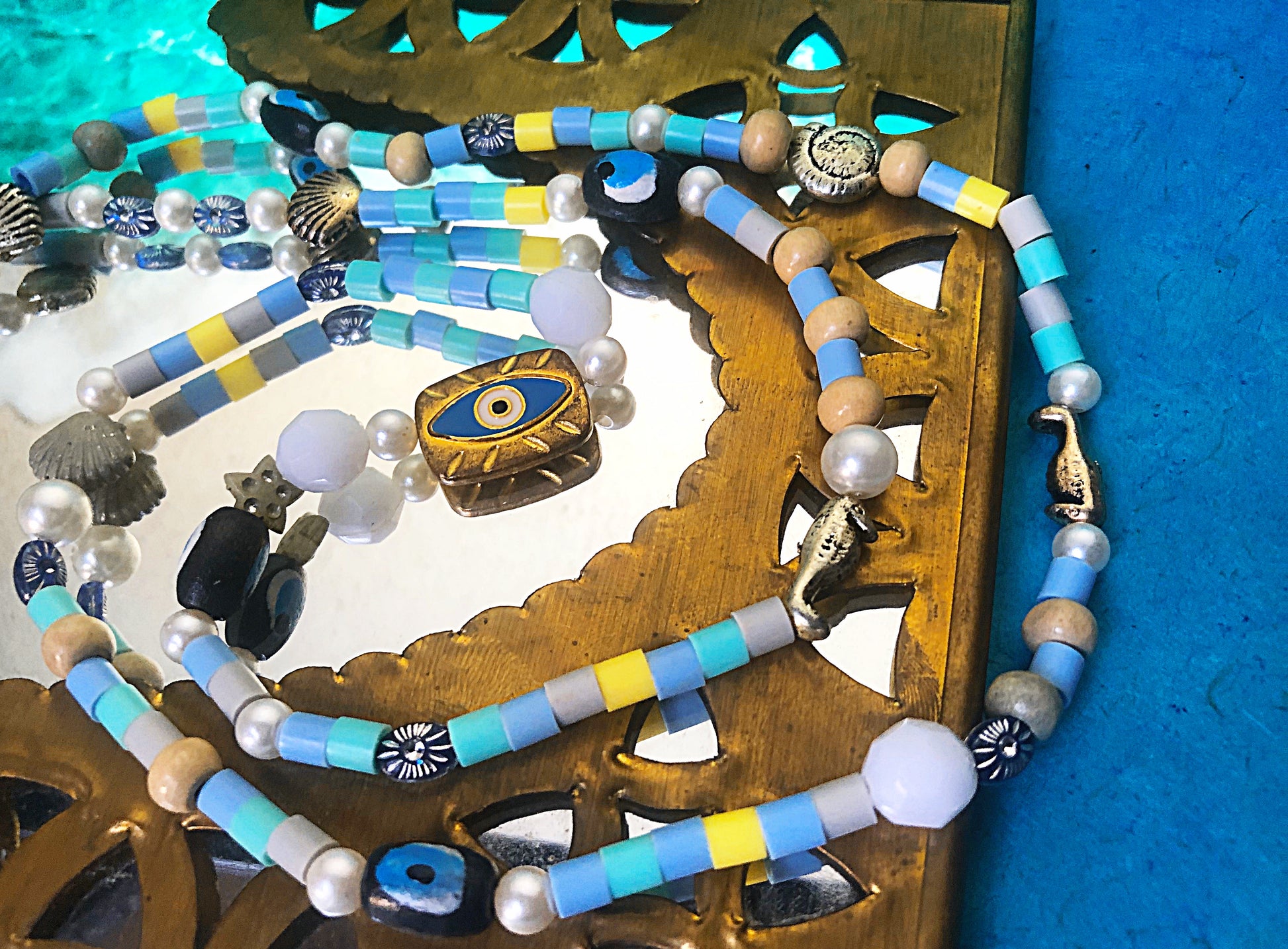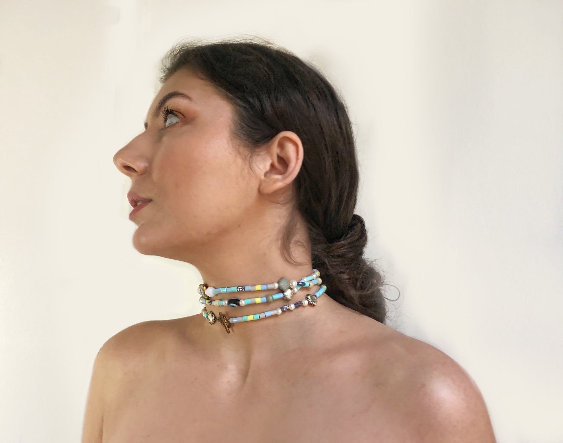 The Versatile Strand is a piece of jewellery that can be worn in many different ways: in a triple choker, single long stand, bracelet and many more.